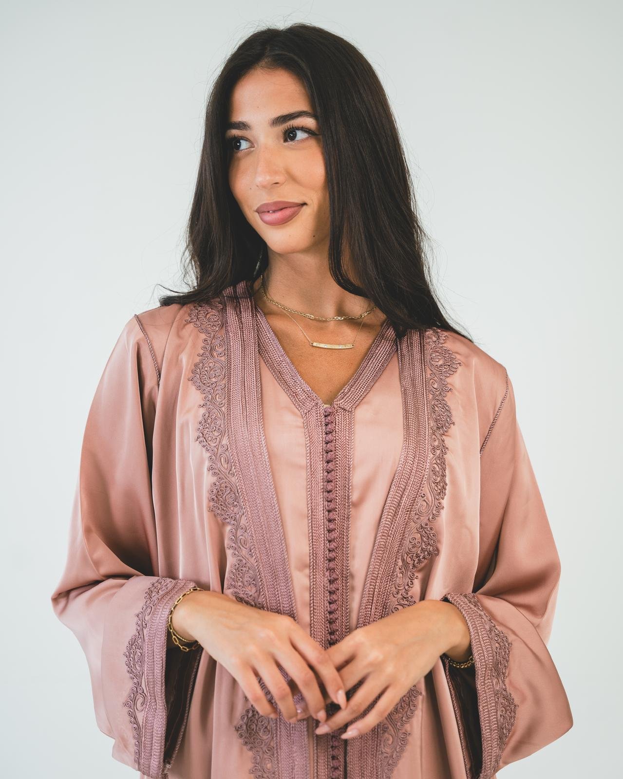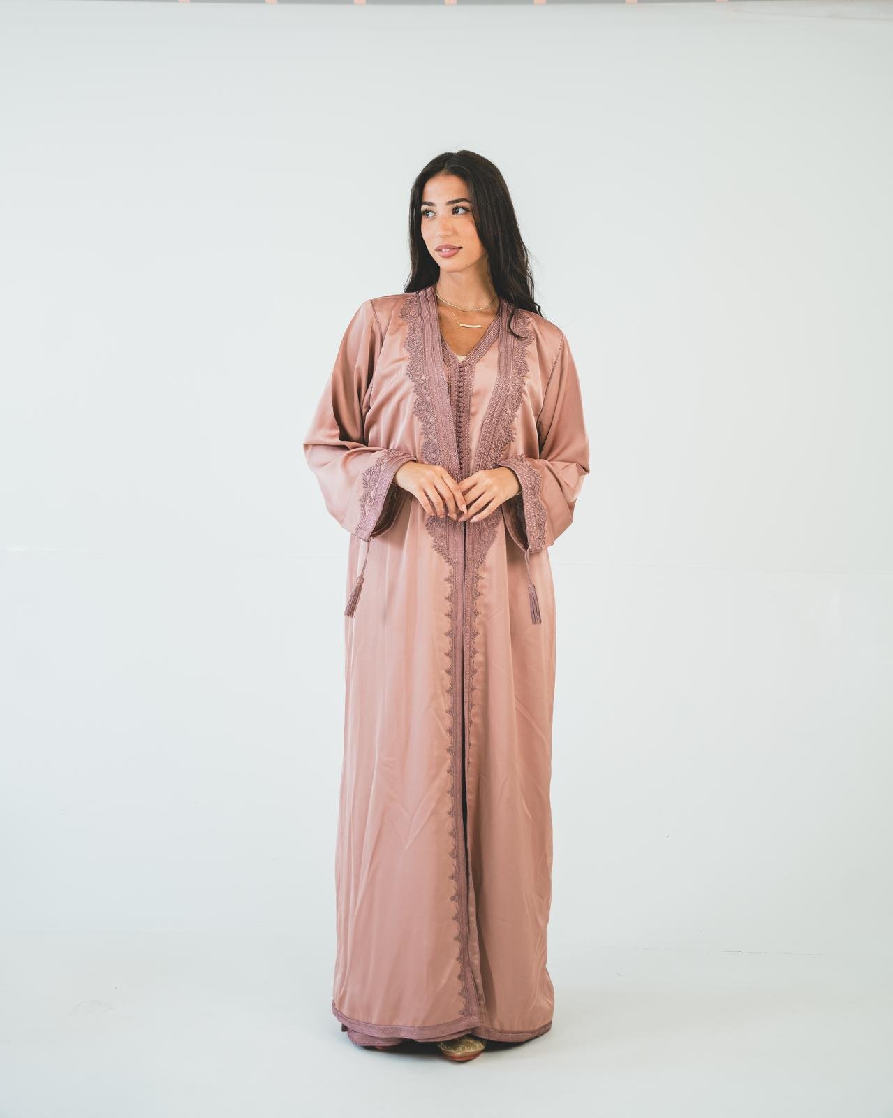 كمية Rose gold silk two-piece caftan