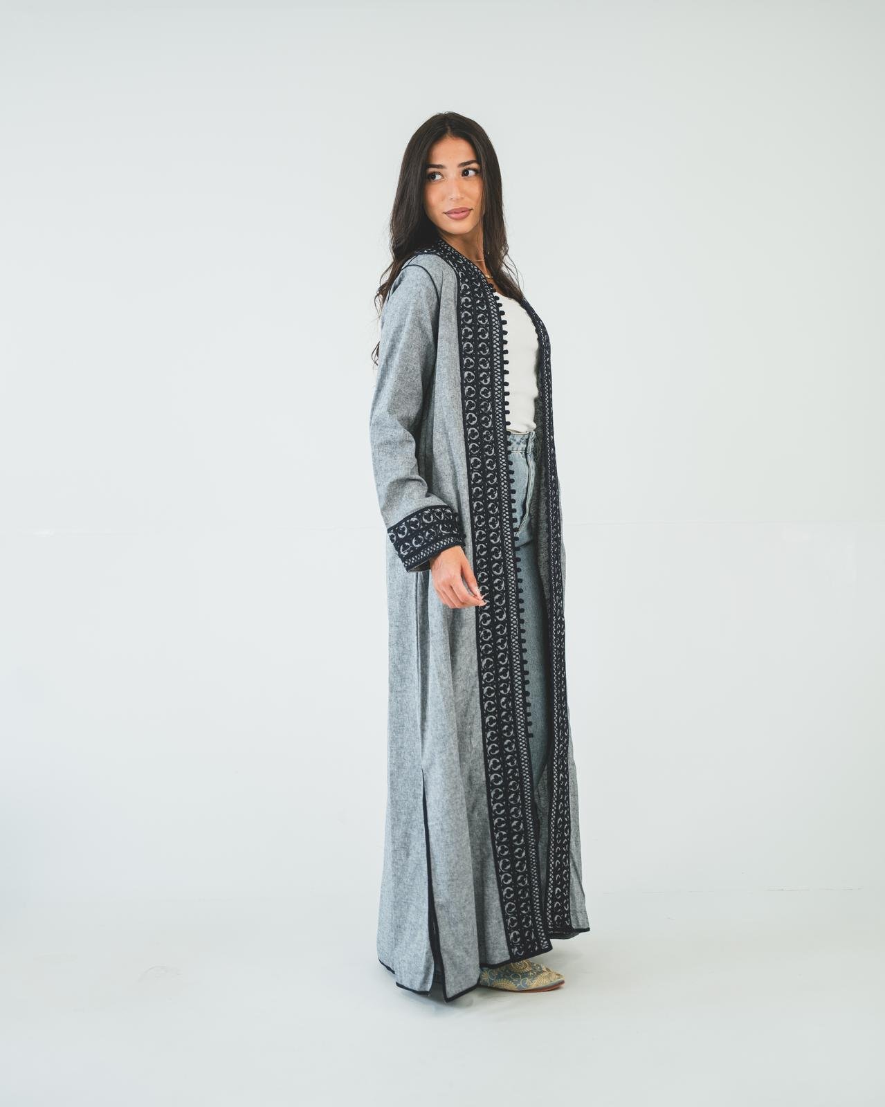 One-piece open caftan (kimono top, gray)