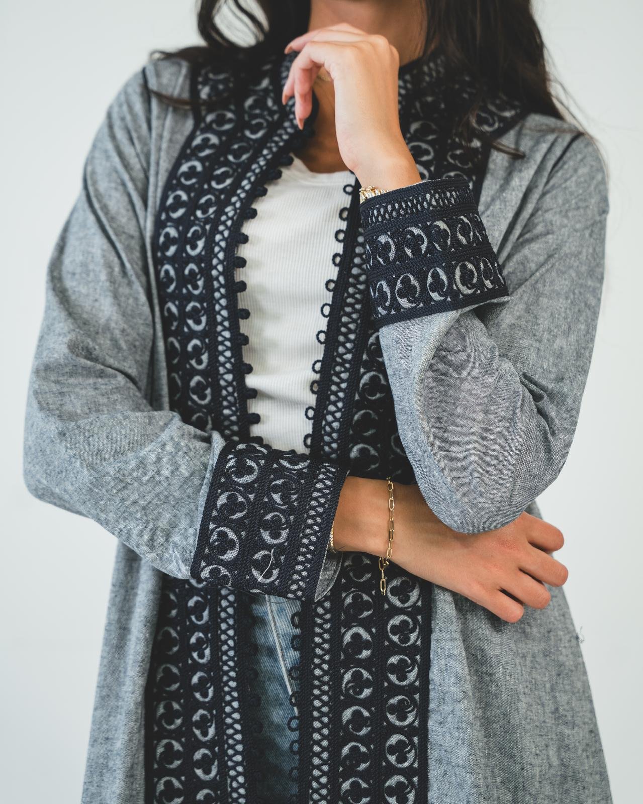 / One-piece open caftan (kimono top, gray)